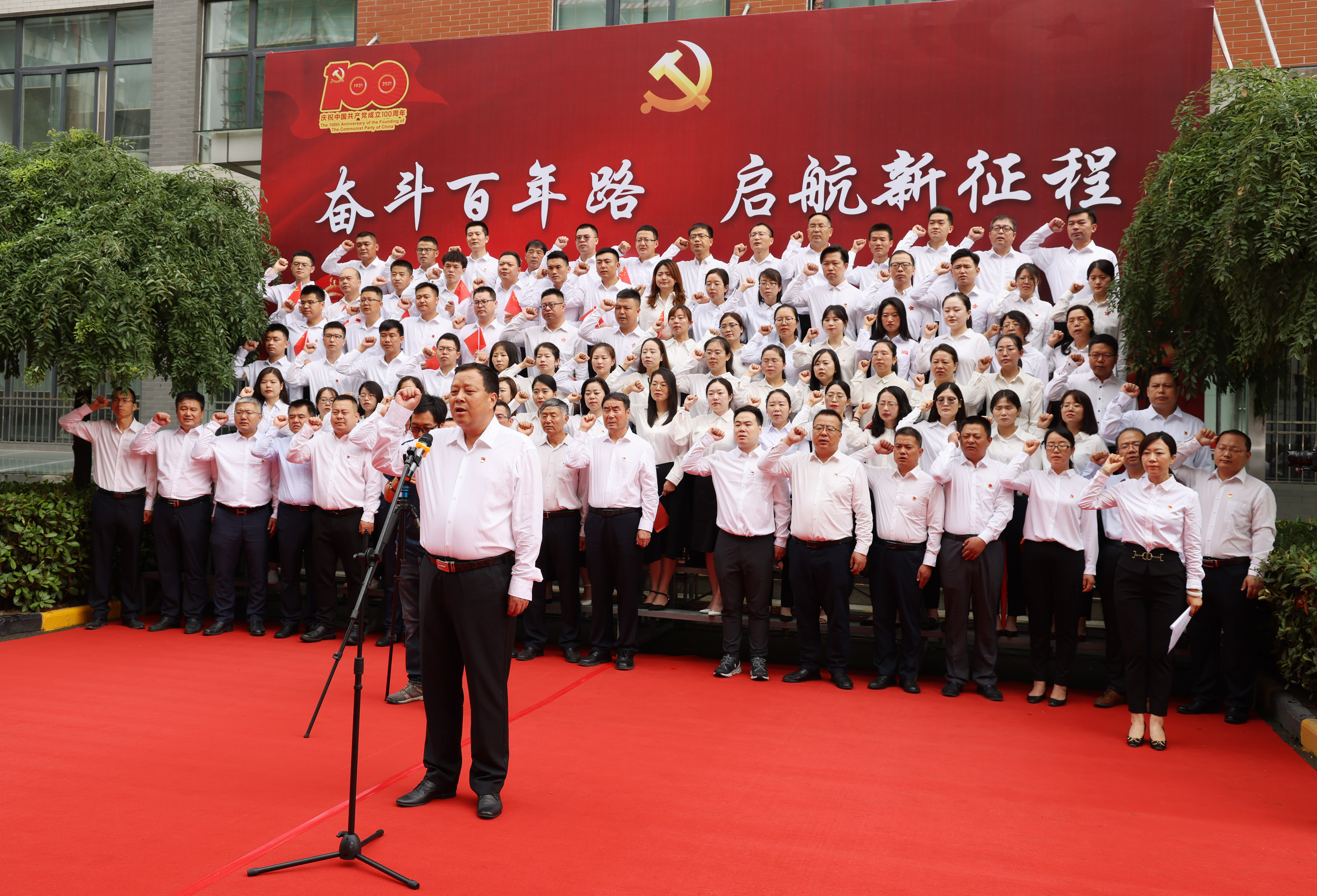 “我志愿加入中國共產(chǎn)黨,擁護黨的綱領(lǐng),遵守黨的章程,履行黨員義務(wù),執(zhí)行黨的決定……”集團黨委書記、董事長魏存成帶領(lǐng)全體黨員,面向鮮紅的中國共產(chǎn)黨黨旗,重溫入黨誓詞。